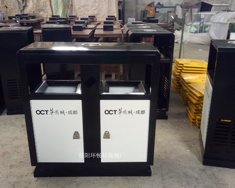 钢制垃圾桶整体都用优质镀锌钢板,经折弯冲压一次性成型,产品一律用室外粉静电喷塑,经过190°的高温,限度延长了垃圾桶的使用寿命,使垃圾桶颜色持久不变,亮丽如新。表层有效做到 易保洁表面光滑之优点,不脱落,不起层。钢制垃圾桶一种存放垃圾的容器,使用镀锌钢板制作而成。