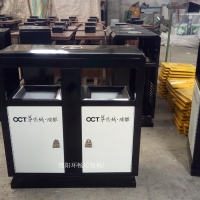 【表面处理】垃圾桶本身经喷砂处理去油去锈后,钢板表面抗紫外线丙稀酸油漆多层喷涂。
