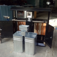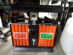 【表面处理】垃圾桶本身经喷砂处理去油去锈后,钢板表面抗紫外线丙稀酸油漆多层喷涂。