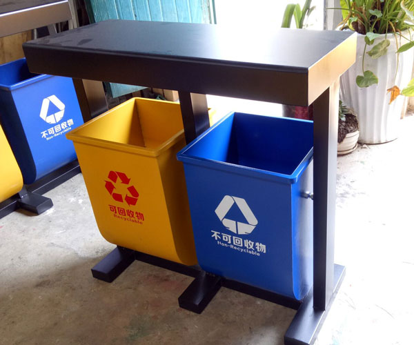 钢制垃圾桶整体都用优质镀锌钢板,经折弯冲压一次性成型,产品一律用室外粉静电喷塑,经过190°的高温,限度延长了垃圾桶的使用寿命,使垃圾桶颜色持久不变,亮丽如新。表层有效做到 易保洁表面光滑之优点,不脱落,不起层。钢制垃圾桶一种存放垃圾的容器,使用镀锌钢板制作而成。