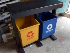 【表面处理】垃圾桶本身经喷砂处理去油去锈后,钢板表面抗紫外线丙稀酸油漆多层喷涂。