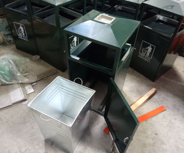 钢制垃圾桶整体都用优质镀锌钢板,经折弯冲压一次性成型,产品一律用室外粉静电喷塑,经过190°的高温,限度延长了垃圾桶的使用寿命,使垃圾桶颜色持久不变,亮丽如新。表层有效做到 易保洁表面光滑之优点,不脱落,不起层。钢制垃圾桶一种存放垃圾的容器,使用镀锌钢板制作而成。