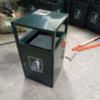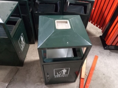 【表面处理】垃圾桶本身经喷砂处理去油去锈后,钢板表面抗紫外线丙稀酸油漆多层喷涂。