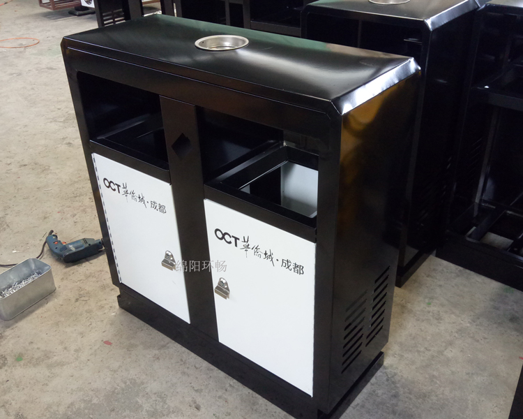 钢制垃圾桶整体都用优质镀锌钢板,经折弯冲压一次性成型,产品一律用室外粉静电喷塑,经过190°的高温,限度延长了垃圾桶的使用寿命,使垃圾桶颜色持久不变,亮丽如新。表层有效做到 易保洁表面光滑之优点,不脱落,不起层。钢制垃圾桶一种存放垃圾的容器,使用镀锌钢板制作而成。