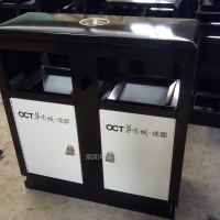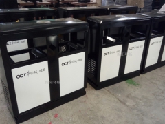 【表面处理】垃圾桶本身经喷砂处理去油去锈后,钢板表面抗紫外线丙稀酸油漆多层喷涂。