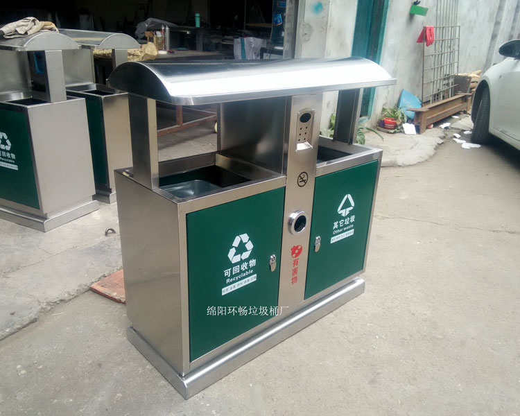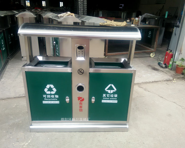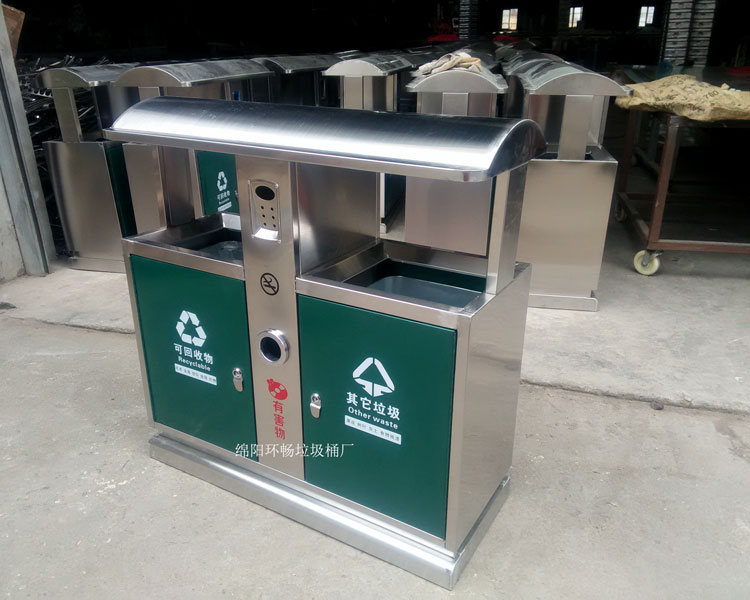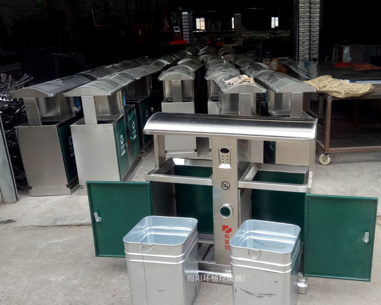 钢制垃圾桶整体都用优质镀锌钢板,经折弯冲压一次性成型,产品一律用室外粉静电喷塑,经过190°的高温,限度延长了垃圾桶的使用寿命,使垃圾桶颜色持久不变,亮丽如新。表层有效做到 易保洁表面光滑之优点,不脱落,不起层。钢制垃圾桶一种存放垃圾的容器,使用镀锌钢板制作而成。