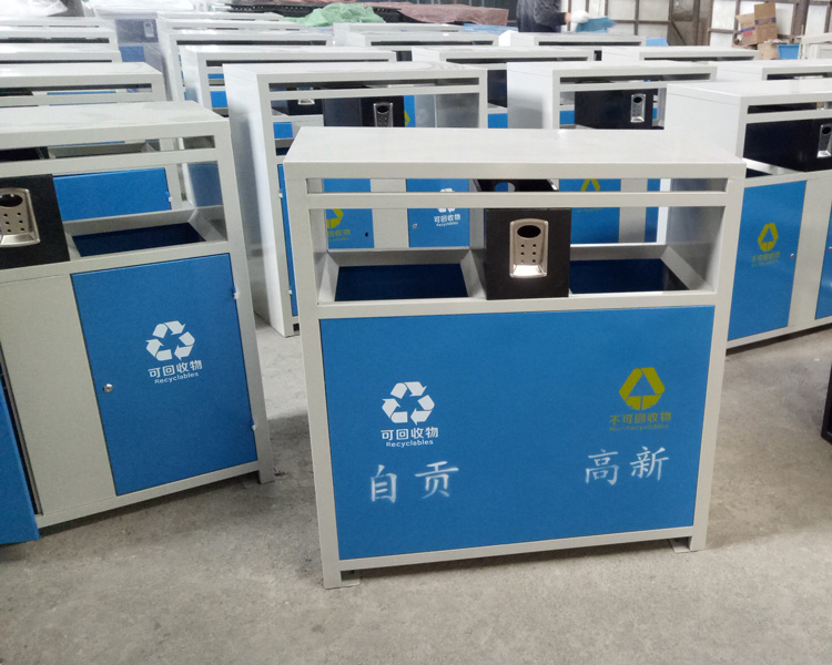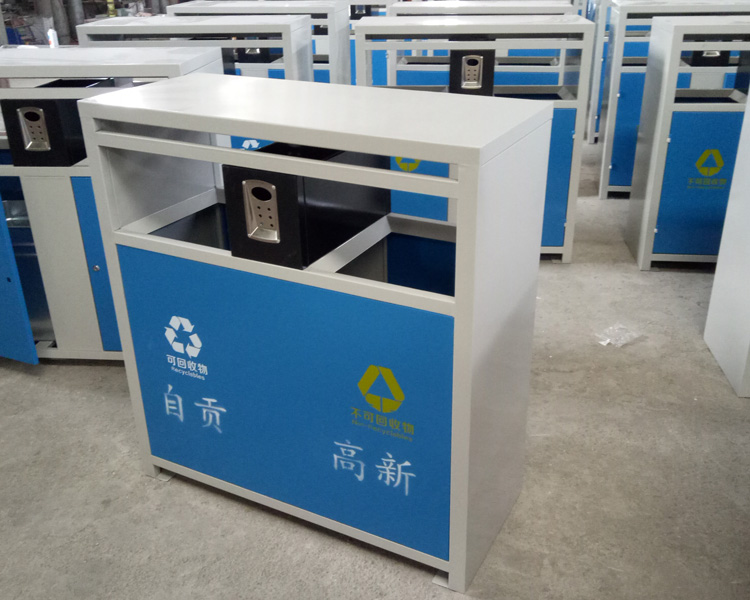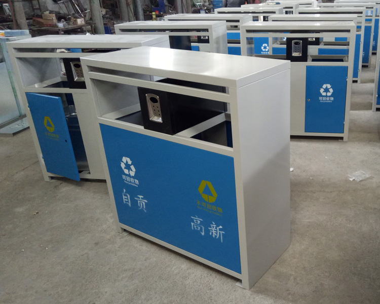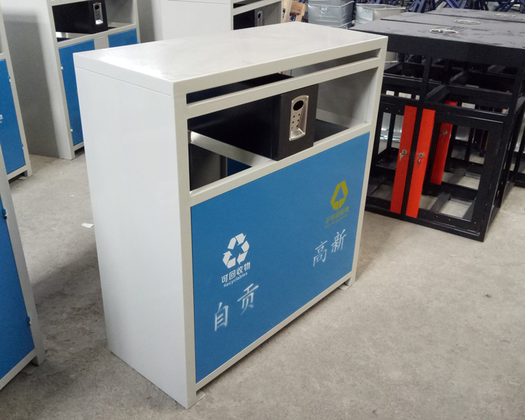钢制垃圾桶整体都用优质镀锌钢板,经折弯冲压一次性成型,产品一律用室外粉静电喷塑,经过190°的高温,限度延长了垃圾桶的使用寿命,使垃圾桶颜色持久不变,亮丽如新。表层有效做到 易保洁表面光滑之优点,不脱落,不起层。钢制垃圾桶一种存放垃圾的容器,使用镀锌钢板制作而成。