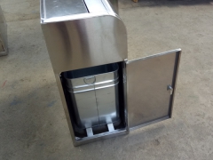 钢制垃圾桶整体都用优质镀锌钢板,经折弯冲压一次性成型,产品一律用室外粉静电喷塑,经过190°的高温,限度延长了垃圾桶的使用寿命,使垃圾桶颜色持久不变,亮丽如新。表层有效做到 易保洁表面光滑之优点,不脱落,不起层。钢制垃圾桶一种存放垃圾的容器,使用镀锌钢板制作而成。