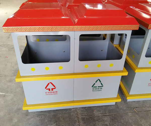 钢制垃圾桶整体都用优质镀锌钢板,经折弯冲压一次性成型,产品一律用室外粉静电喷塑,经过190°的高温,限度延长了垃圾桶的使用寿命,使垃圾桶颜色持久不变,亮丽如新。表层有效做到 易保洁表面光滑之优点,不脱落,不起层。钢制垃圾桶一种存放垃圾的容器,使用镀锌钢板制作而成。