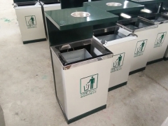 【表面处理】垃圾桶本身经喷砂处理去油去锈后,钢板表面抗紫外线丙稀酸油漆多层喷涂。