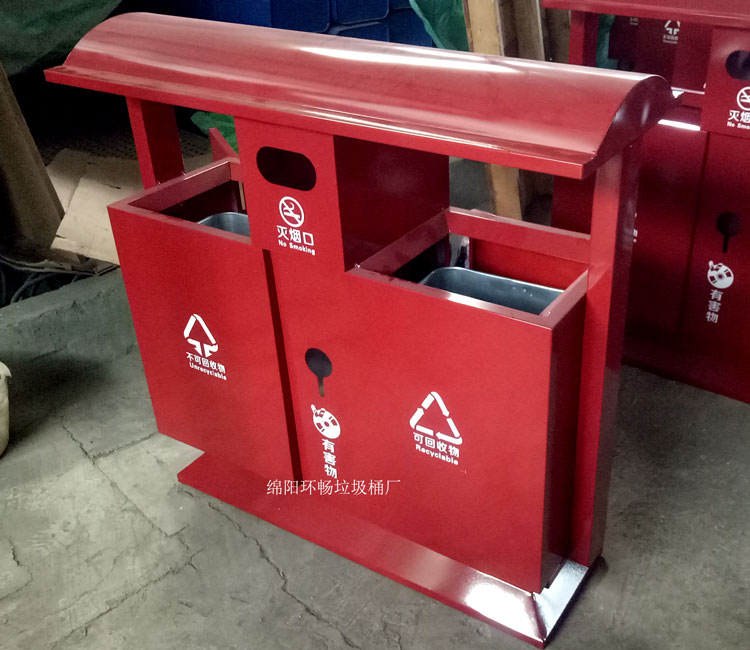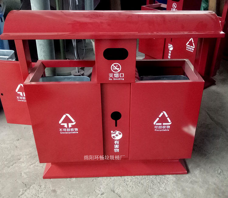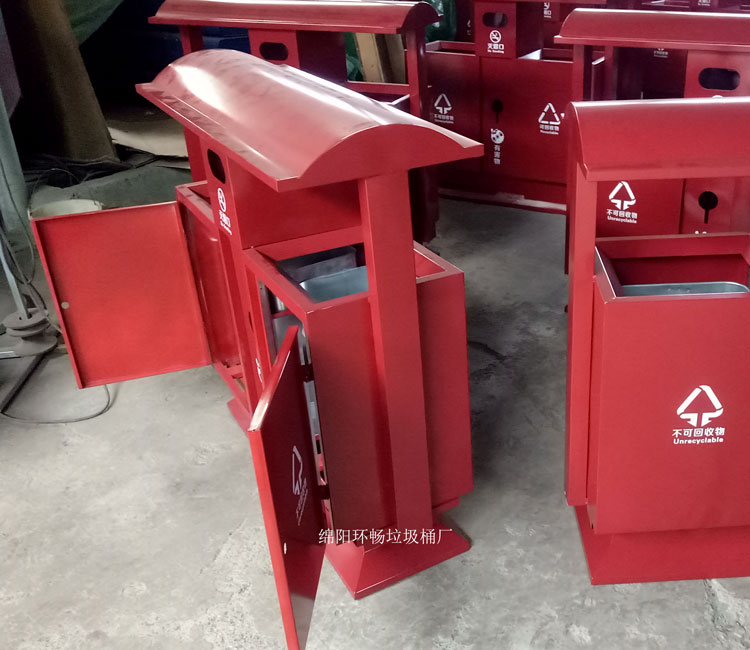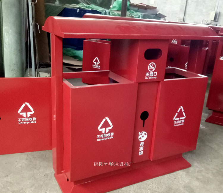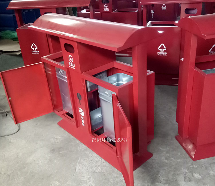 钢制垃圾桶整体都用优质镀锌钢板,经折弯冲压一次性成型,产品一律用室外粉静电喷塑,经过190°的高温,限度延长了垃圾桶的使用寿命,使垃圾桶颜色持久不变,亮丽如新。表层有效做到 易保洁表面光滑之优点,不脱落,不起层。钢制垃圾桶一种存放垃圾的容器,使用镀锌钢板制作而成。