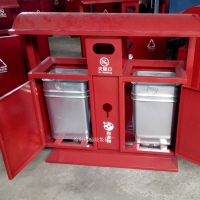 【表面处理】垃圾桶本身经喷砂处理去油去锈后,钢板表面抗紫外线丙稀酸油漆多层喷涂。
