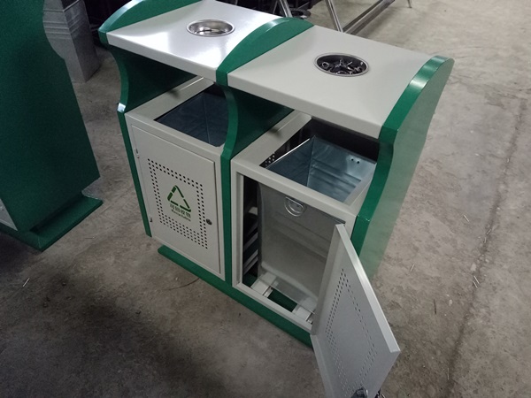 钢制垃圾桶整体都用优质镀锌钢板,经折弯冲压一次性成型,产品一律用室外粉静电喷塑,经过190°的高温,限度延长了垃圾桶的使用寿命,使垃圾桶颜色持久不变,亮丽如新。表层有效做到 易保洁表面光滑之优点,不脱落,不起层。钢制垃圾桶一种存放垃圾的容器,使用镀锌钢板制作而成。
