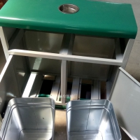 【表面处理】垃圾桶本身经喷砂处理去油去锈后,钢板表面抗紫外线丙稀酸油漆多层喷涂。