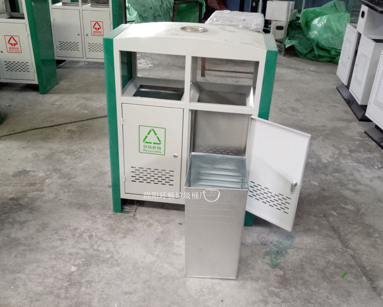 钢制垃圾桶整体都用优质镀锌钢板,经折弯冲压一次性成型,产品一律用室外粉静电喷塑,经过190°的高温,限度延长了垃圾桶的使用寿命,使垃圾桶颜色持久不变,亮丽如新。表层有效做到 易保洁表面光滑之优点,不脱落,不起层。钢制垃圾桶一种存放垃圾的容器,使用镀锌钢板制作而成。